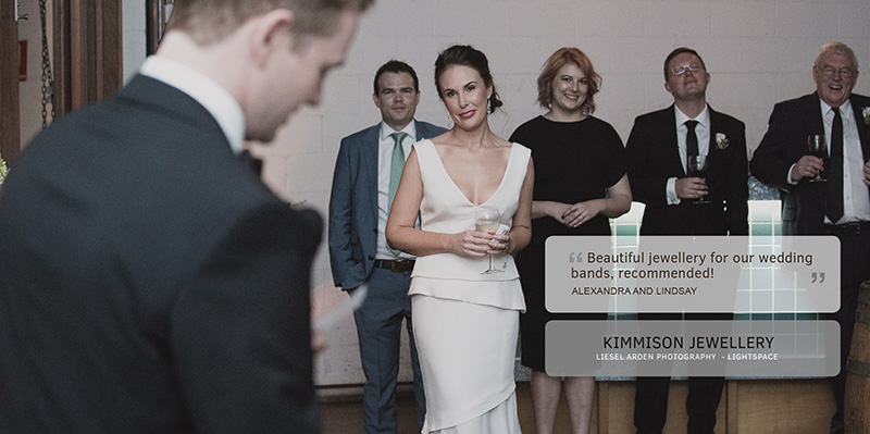 When we got the wedding band home, a week earlier than originally quoted, and my fiancé saw it she was literally bouncing and bubbling around the house, it was the happiest and most excited that I had seen her since I had proposed to her in December. We are extremely impressed with the quality and craftsmanship of the wedding band, but more importantly the communication and interaction with Kim was excellent. We highly recommend Kimmison to anyone, and we will be talking to Kim about all our other jewellery needs in the future. Thanks again” — Andrew Murray